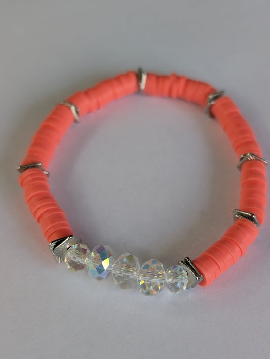 Neon coral - Resort Ready Silver iridescence Heishi Bracelet