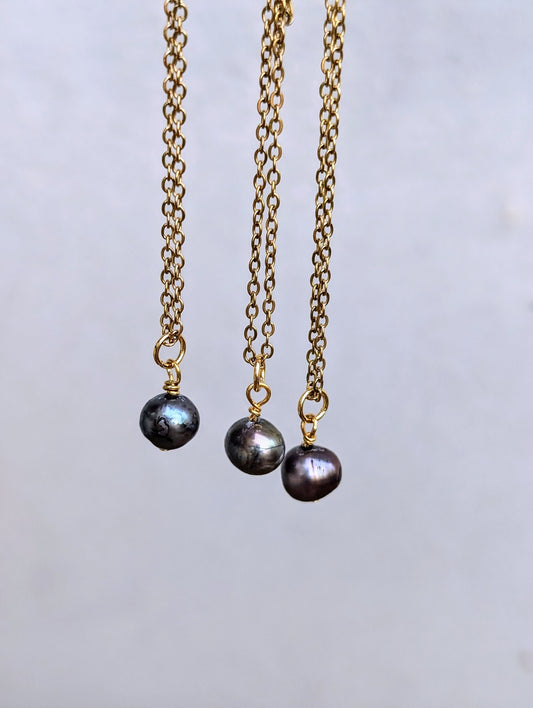 Black Drop Pearl Pendant Necklace