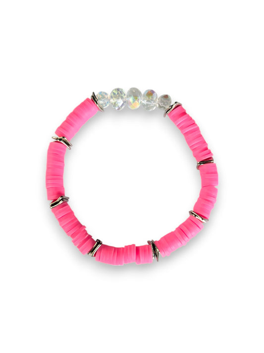 Hot Pink - Resort Ready Silver Heishi Bracelet