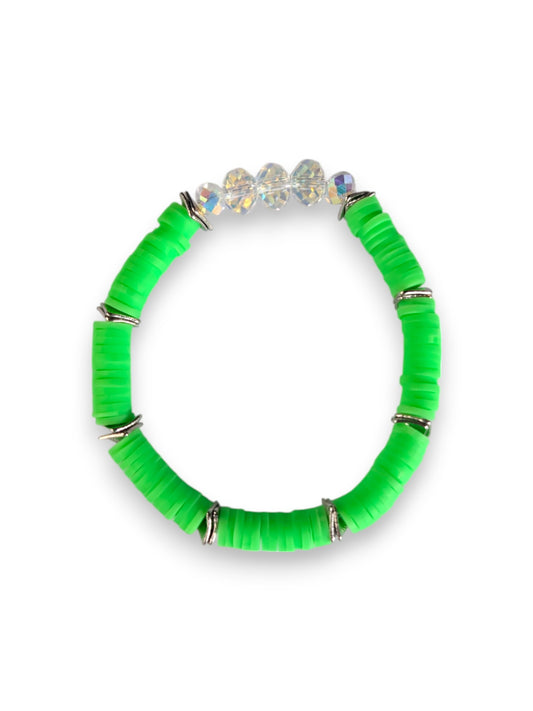 Neon Lime - Resort Ready Silver Heishi Bracelet