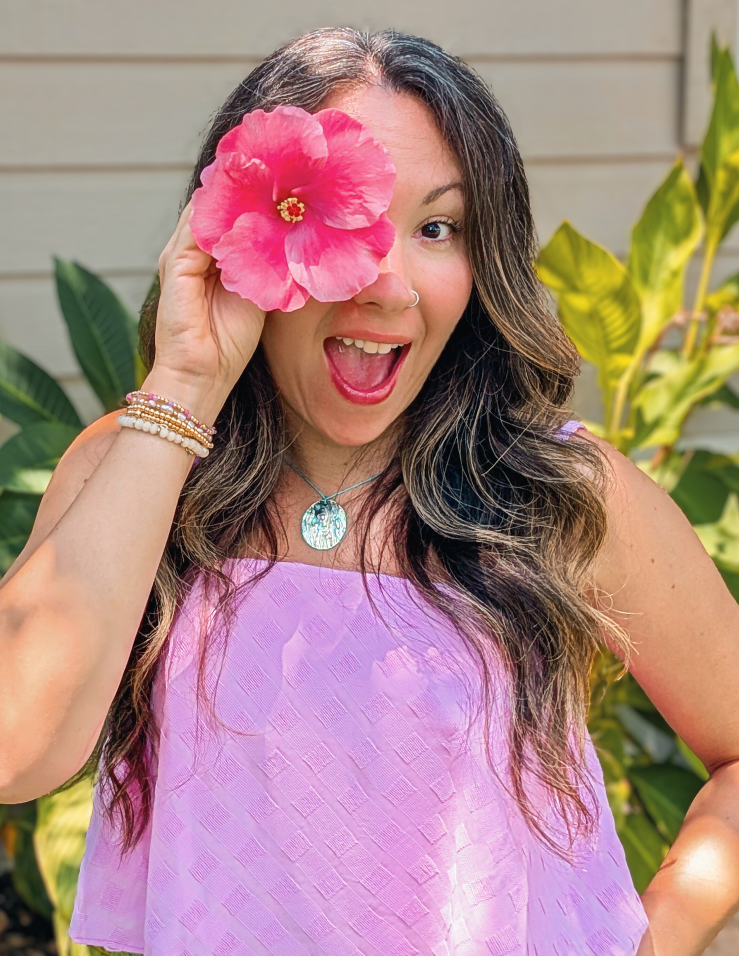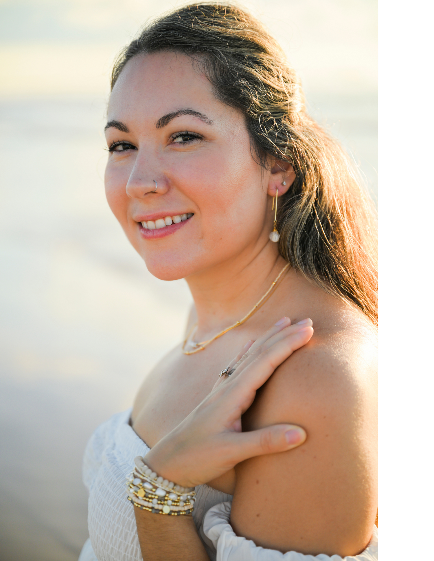 Our founder and designer, Ashley, began this journey as a creative outlet — a way to express her love for the coast, her passion for meaningful design, and her desire to create jewelry that allows women to feel Radiance, joy, and connected. What began as a small dream has grown into a community built on warmth, authenticity, and aloha.