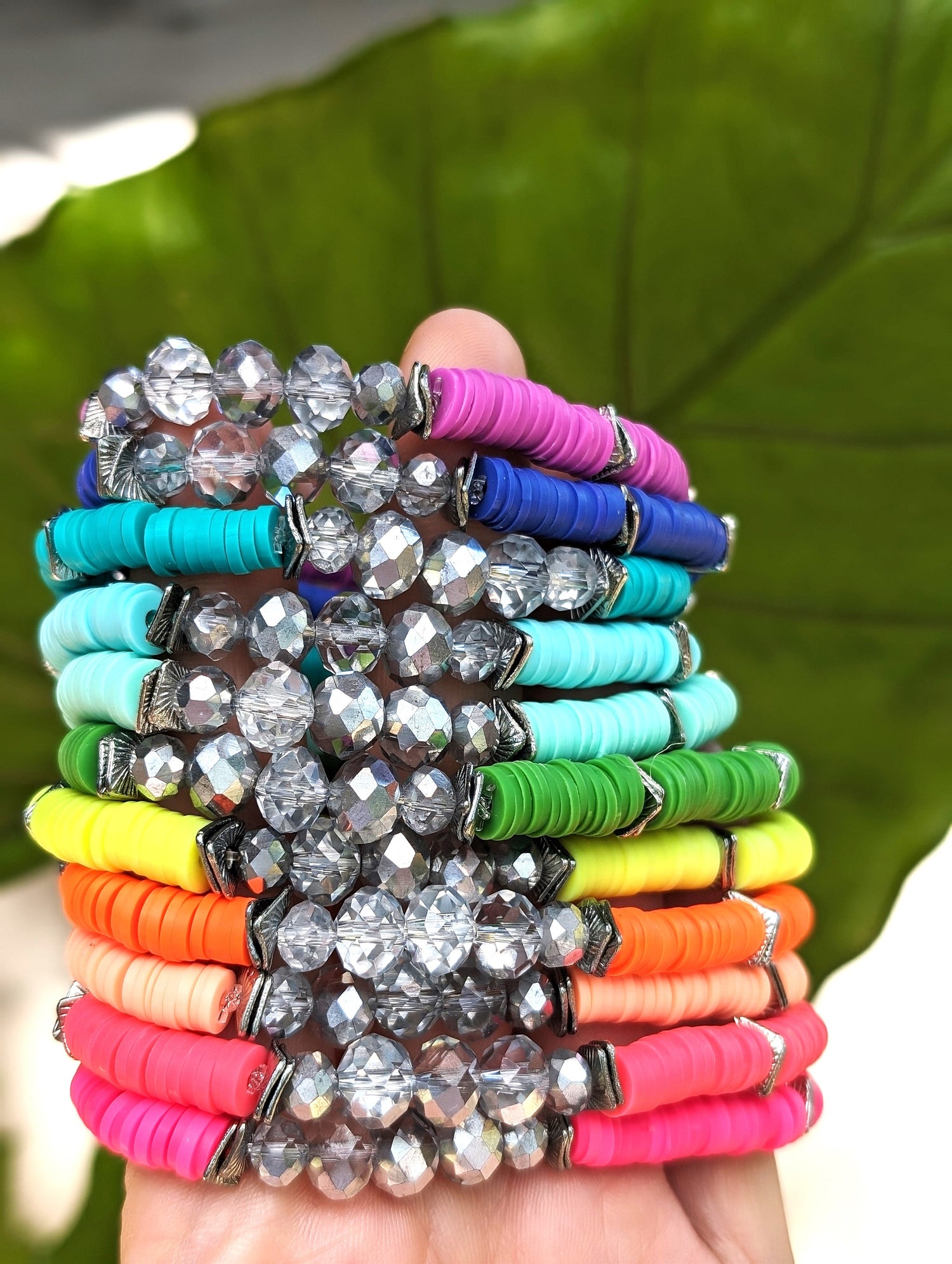 We have everything from trendy colorful heishi bracelets, to the popular boho gemstone and Eessential oil diffuser bracelets. For the ocean and tropical lovers we have shell bracelets and a variety of ocean themed charms to choose from! They are all handmade using high quality waxed cord, and are completely adjustable with sliding lock closures. You are sure to find some beautiful pieces for everyday wear, perfect for stacking and style-mixing.