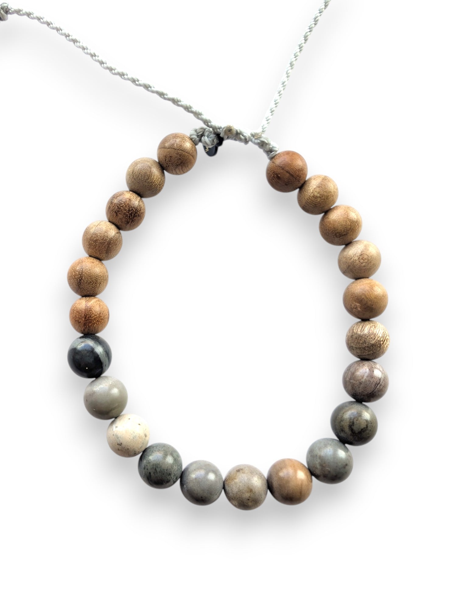- 8mm genuine Thunder Jasper beads and Sandalwood beads