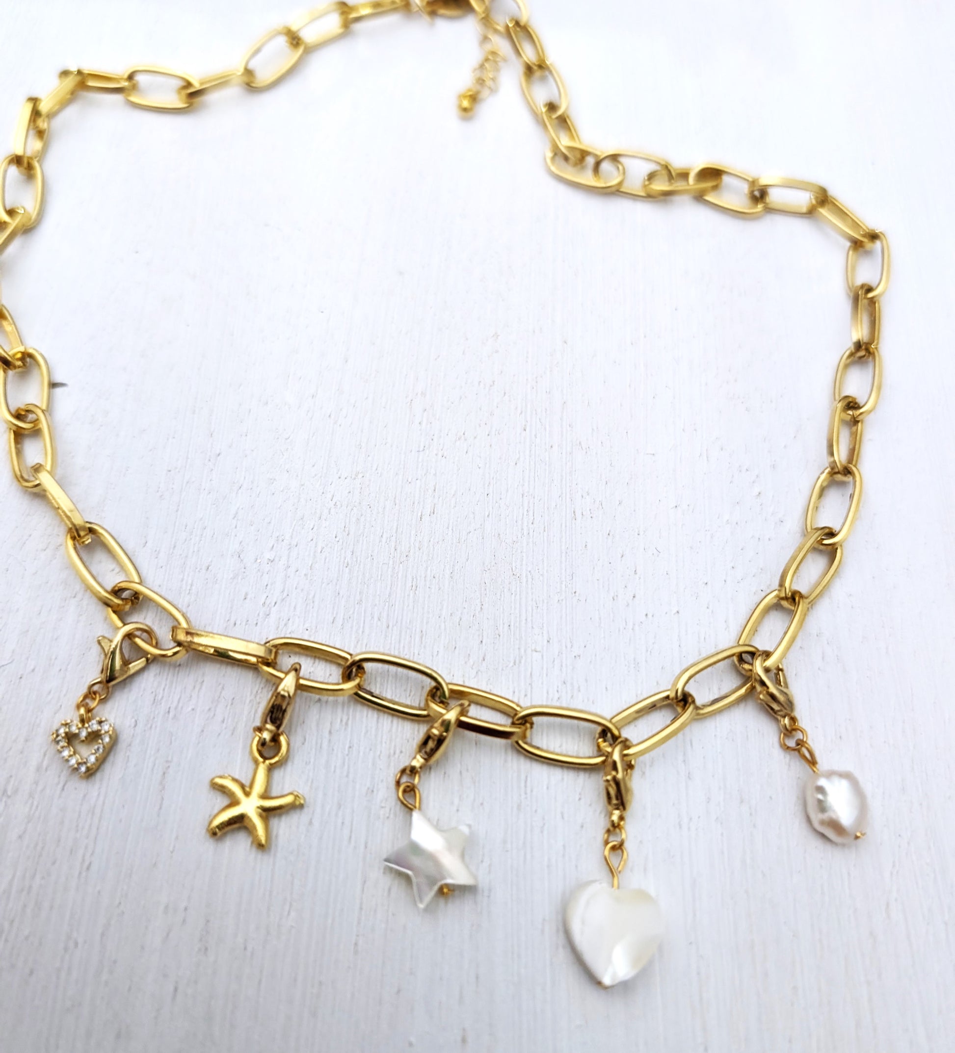 24K Gold Plated heart charm with lobster claw clasp for adjustable placement.