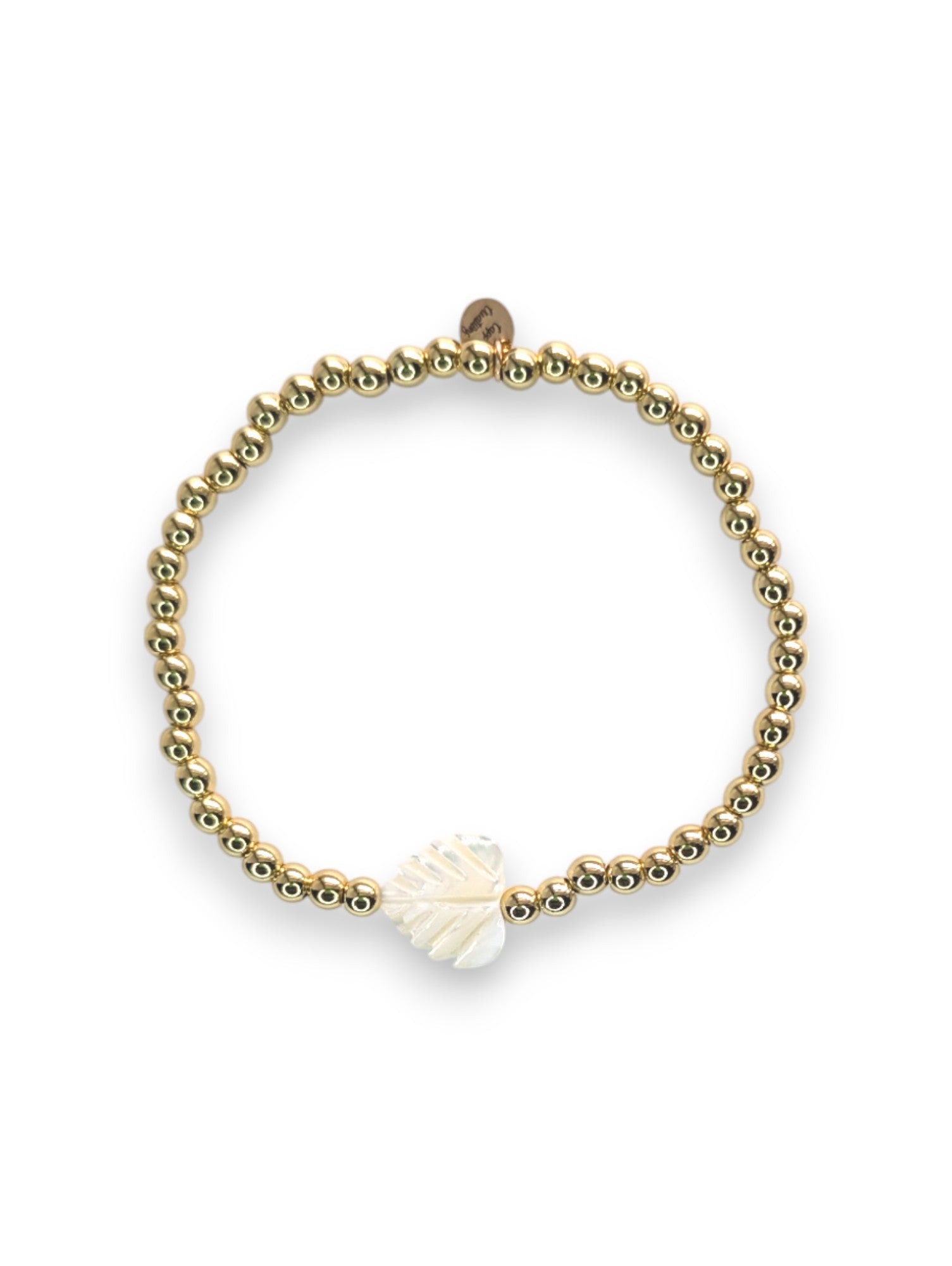 Tropical chic meets fun with this Monstera Leaf Gold Bracelet! Featuring delicate mother-of-pearl leaves in soft white tones against shimmering gold. Perfect for beach days or adding a pop of nature to any outfit - stack it or rock it solo!